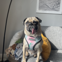I'm a ball of energy. I'm a happy and sweet blind pug. I’m a sweet and playful girl.