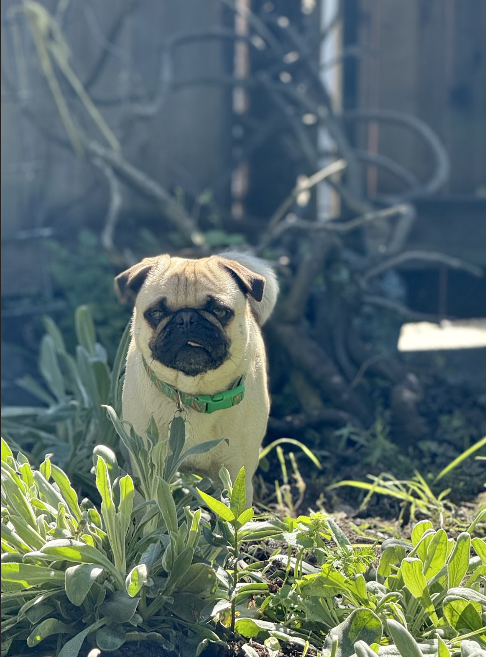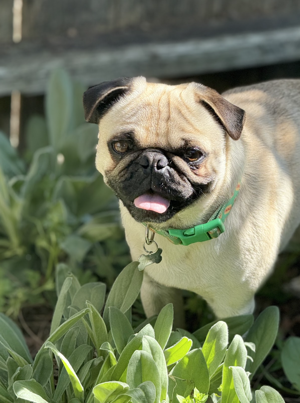 This ridiculously adorable pug came to us from Oakland Animal Services after being found as a stray. We estimate he’s about 4 years old, and he’s just as sweet as he looks.