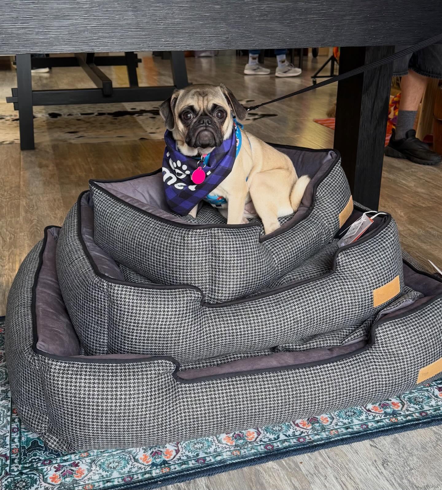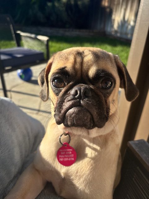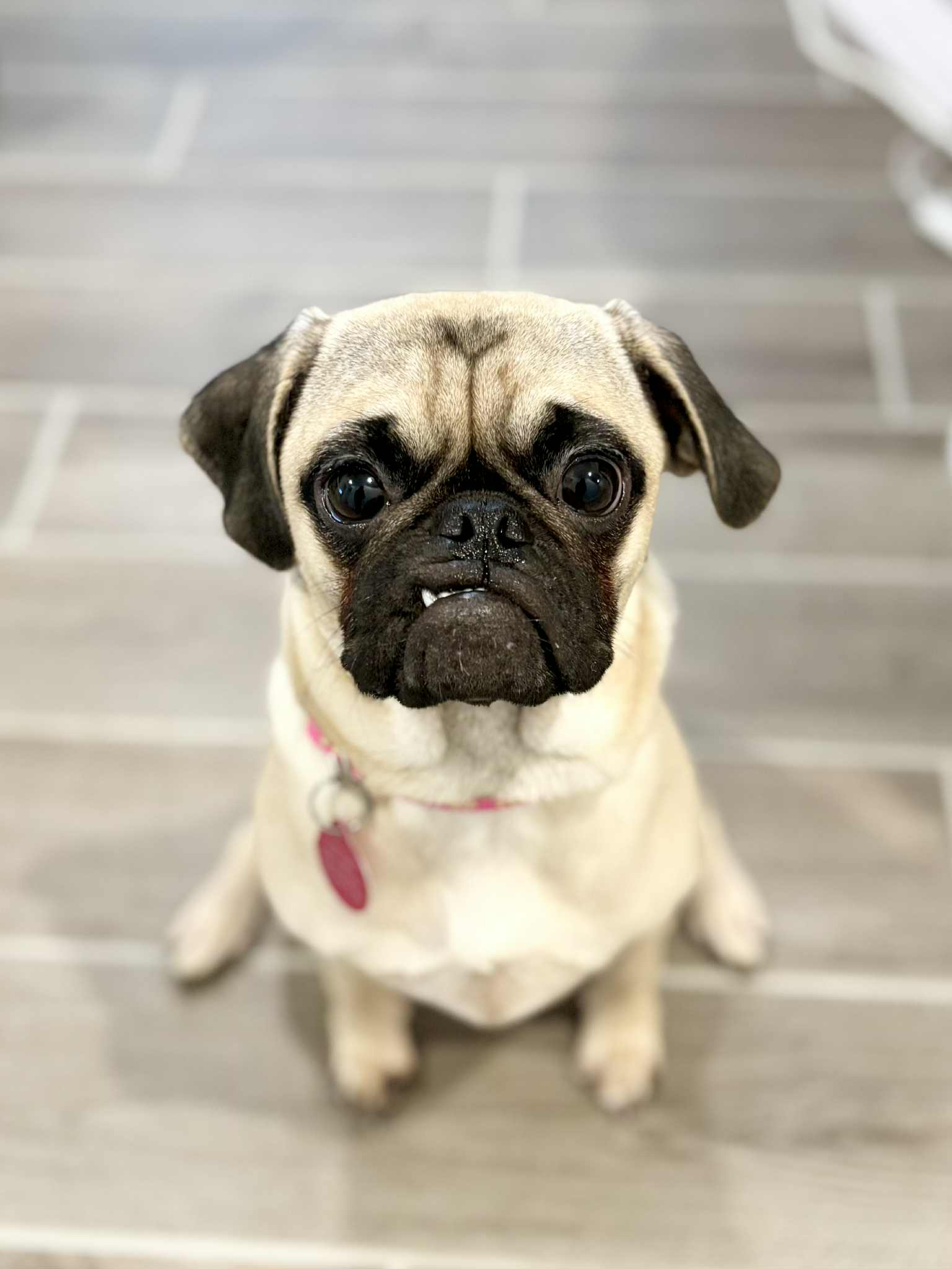 Iris is a playful, affectionate girl is the perfect mix of energy and snuggles. She’s crate-trained, still working on potty-training, and gets along great with her foster siblings... both pug and human kids alike.