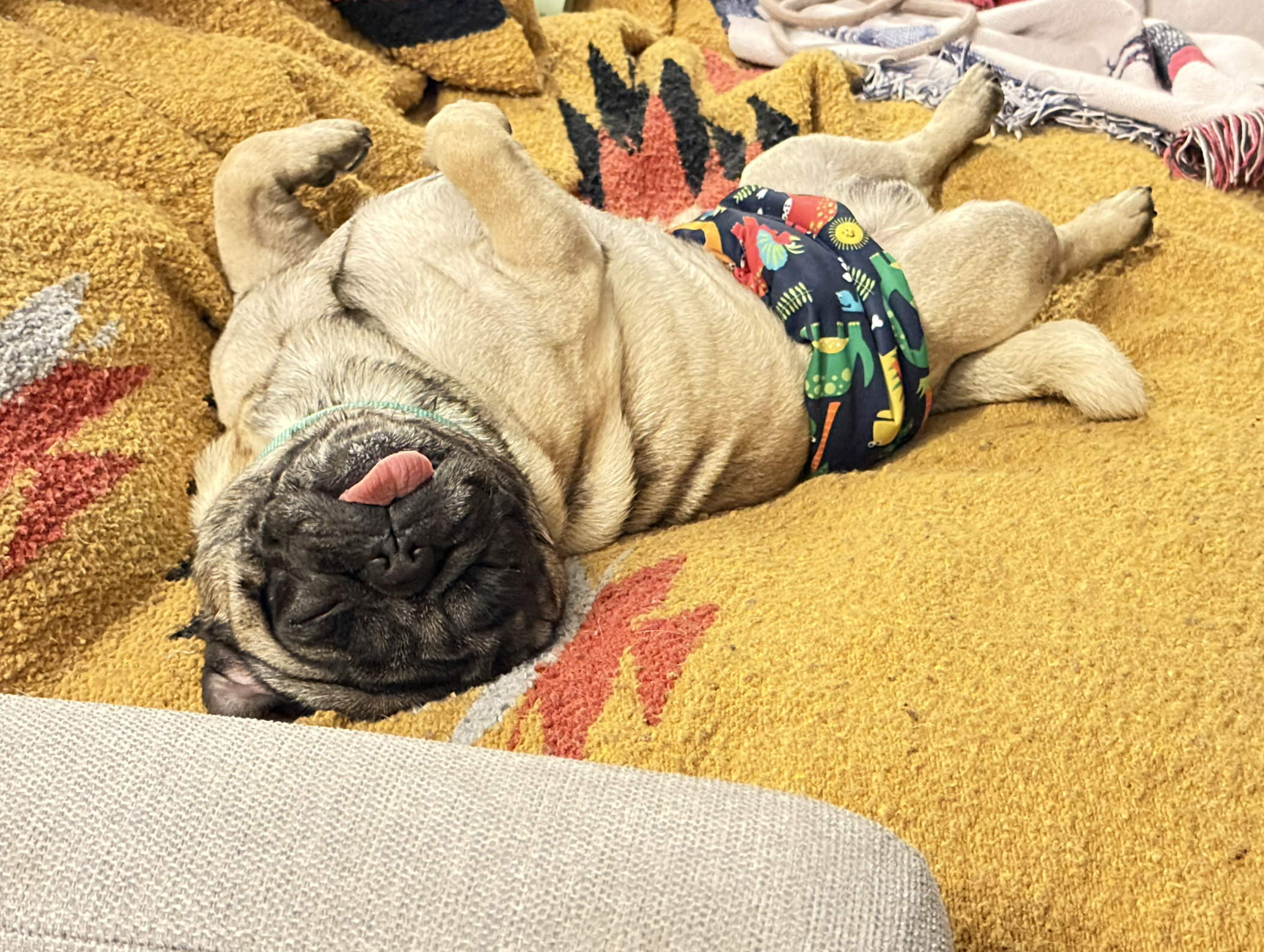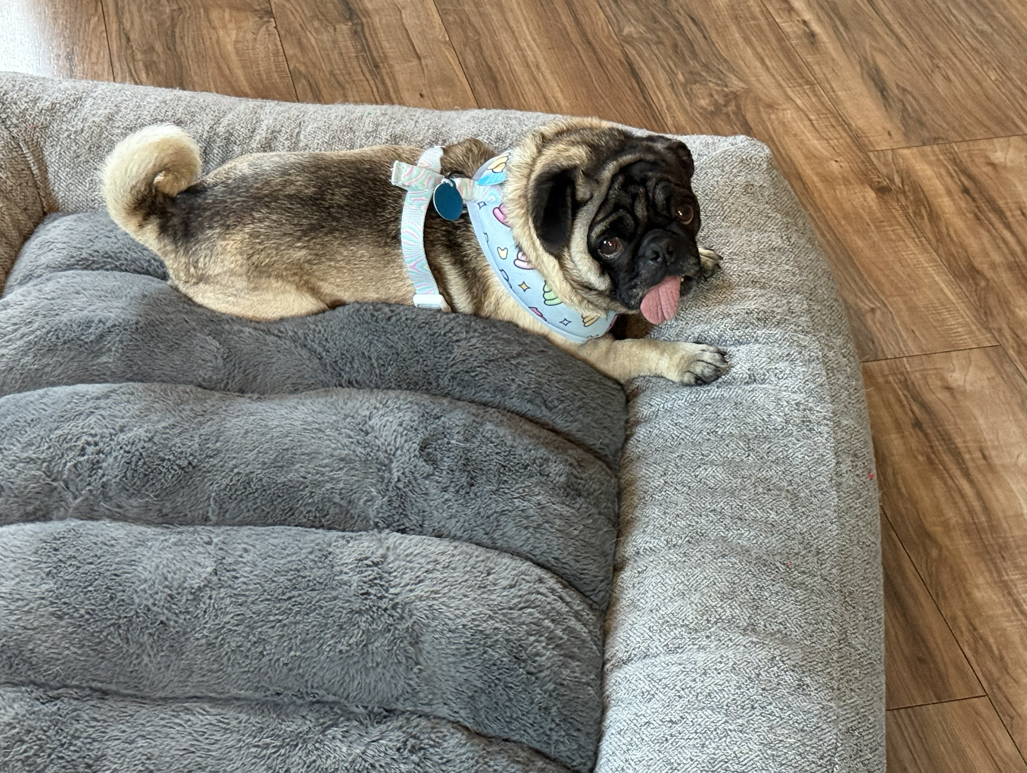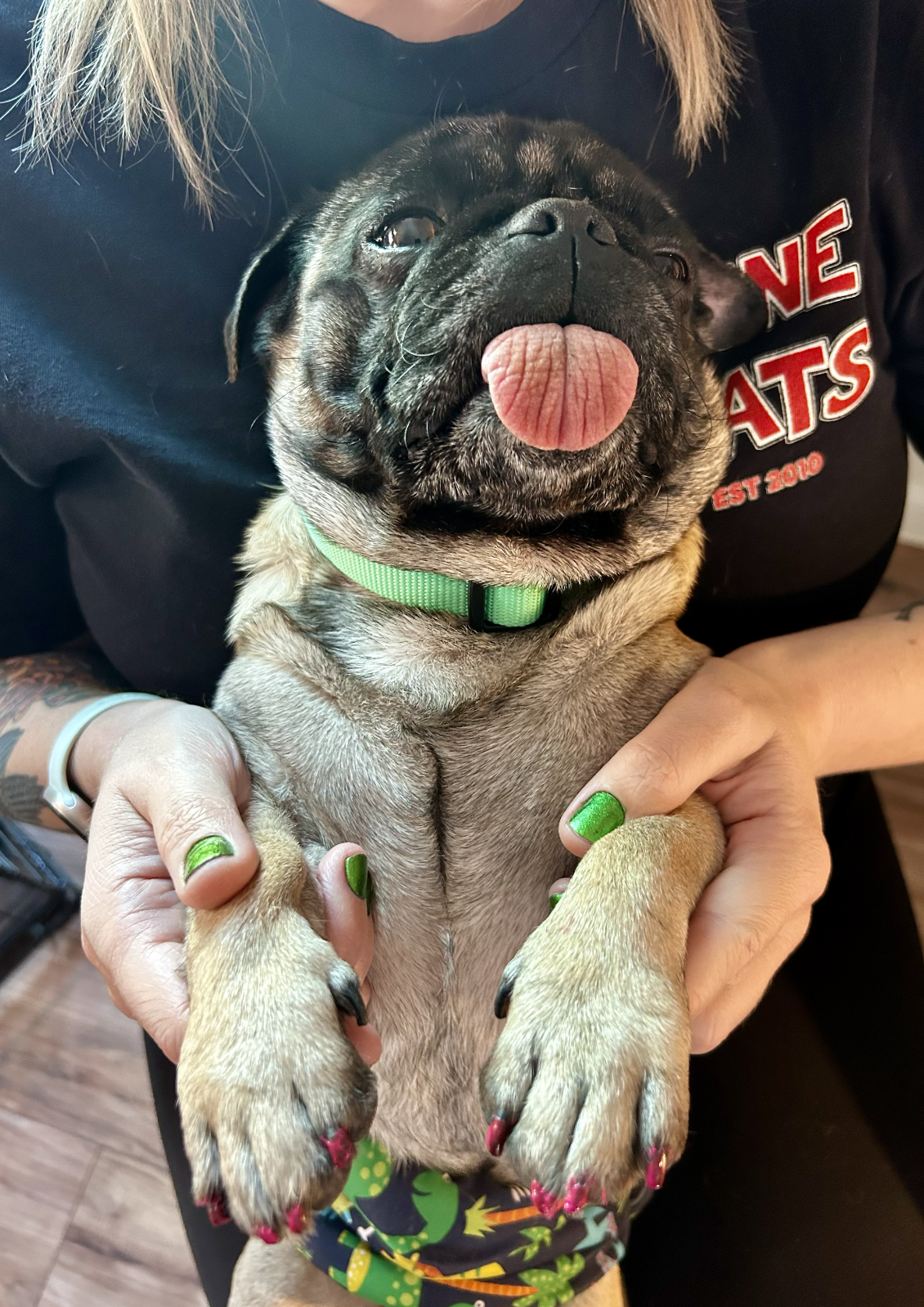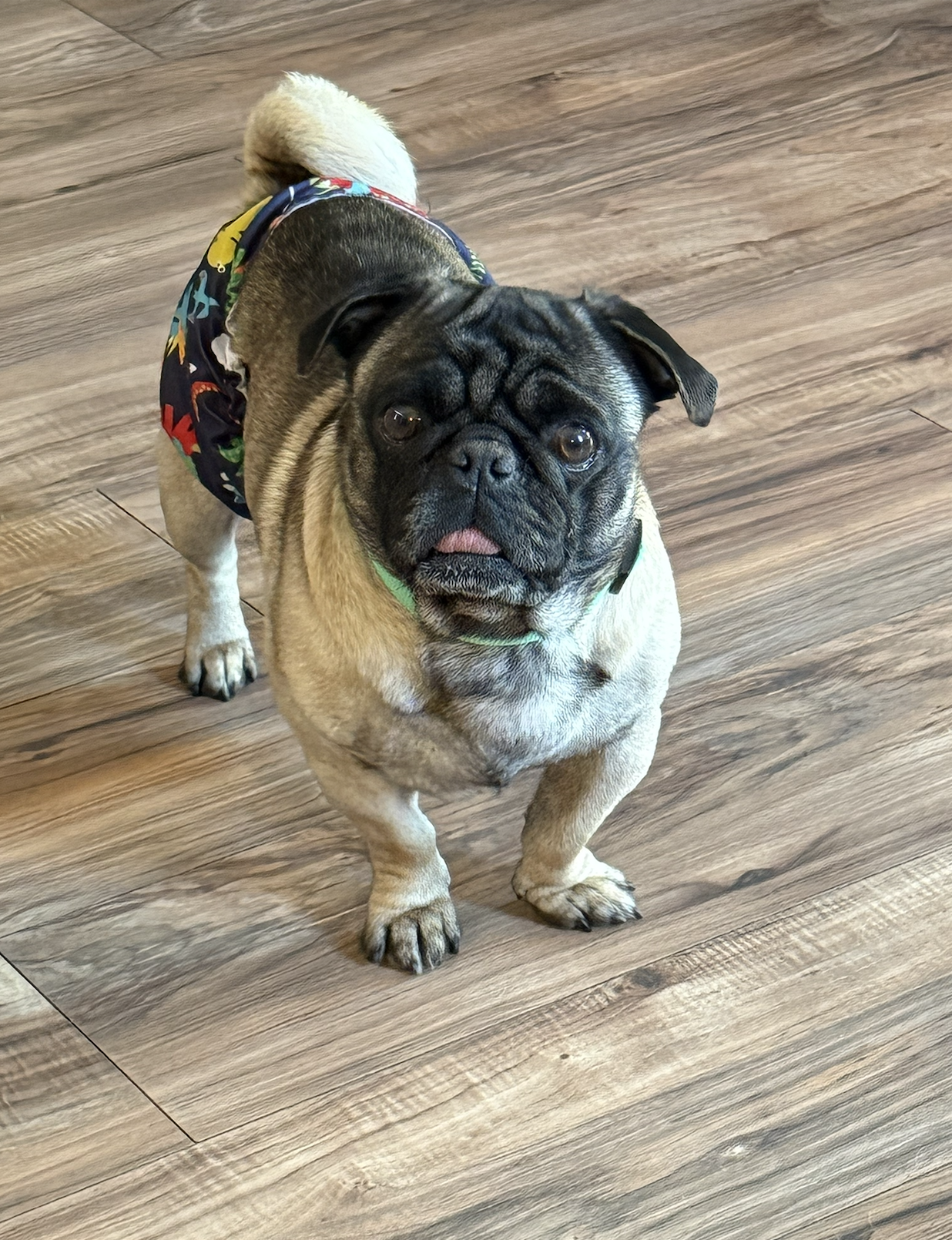 Jeffy is about four years old and came to us as an owner surrender along with two other pugs after their owner fell on hard times and could no longer care for them. When our friends at @pughotel took them in for us, all three were in pretty rough shape. But after plenty of baths, flea treatment, and lots of TLC, they’re already looking so much better.