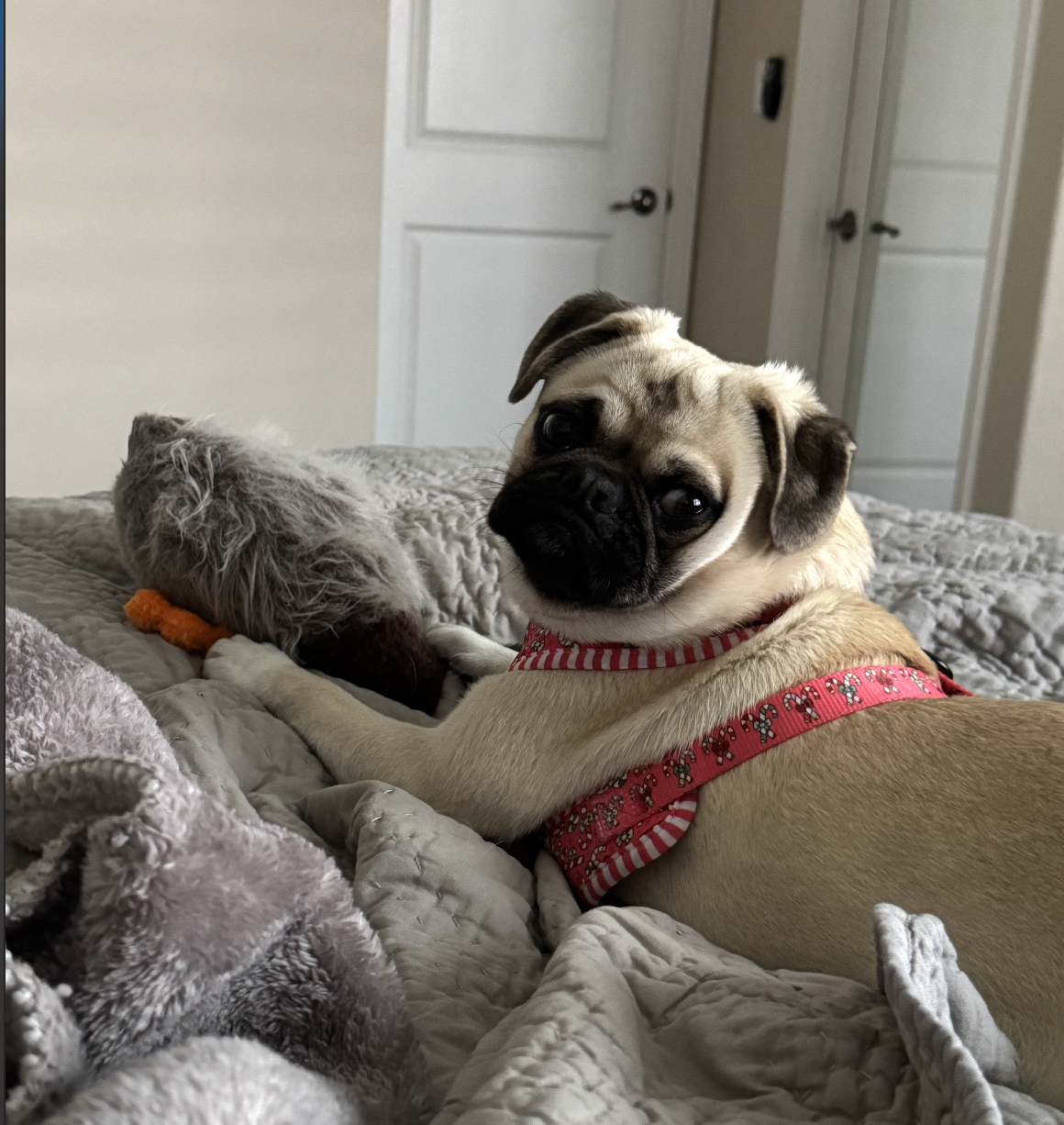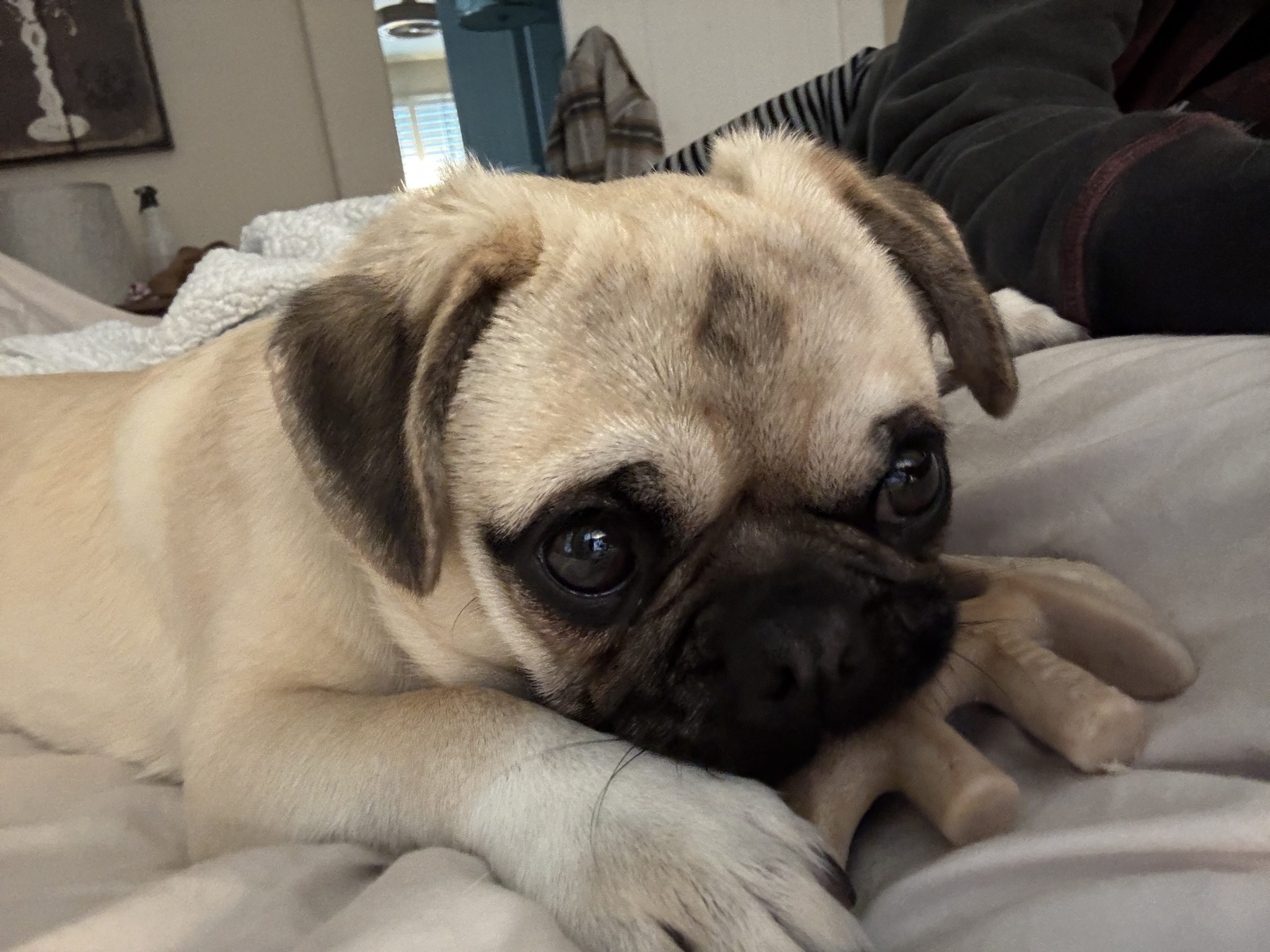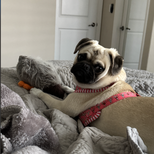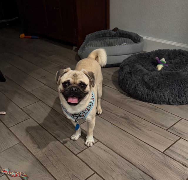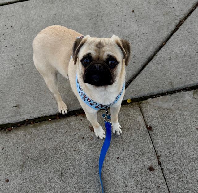 Meet Klaus! This adorable pug puppy with a beautiful cream coat came to us from a Central Valley shelter where he had been surrendered by his owner.