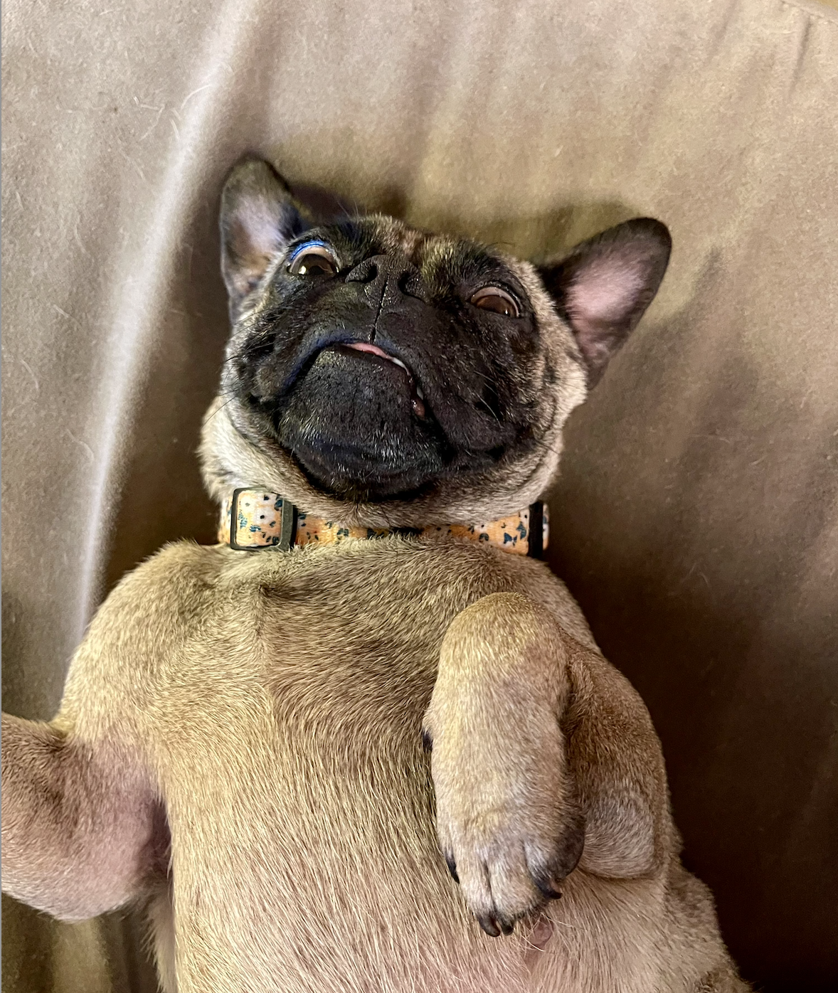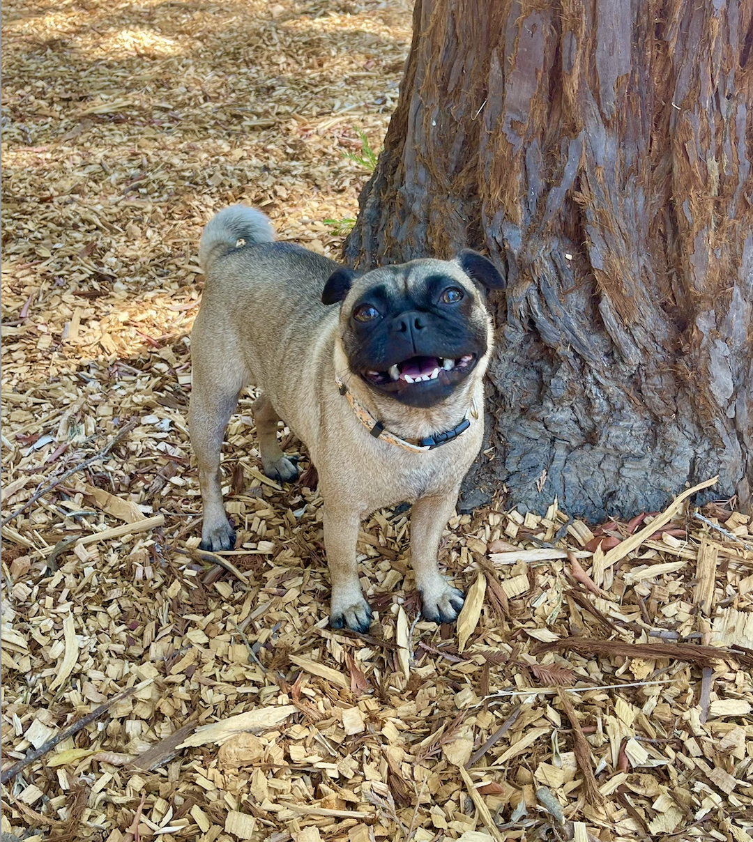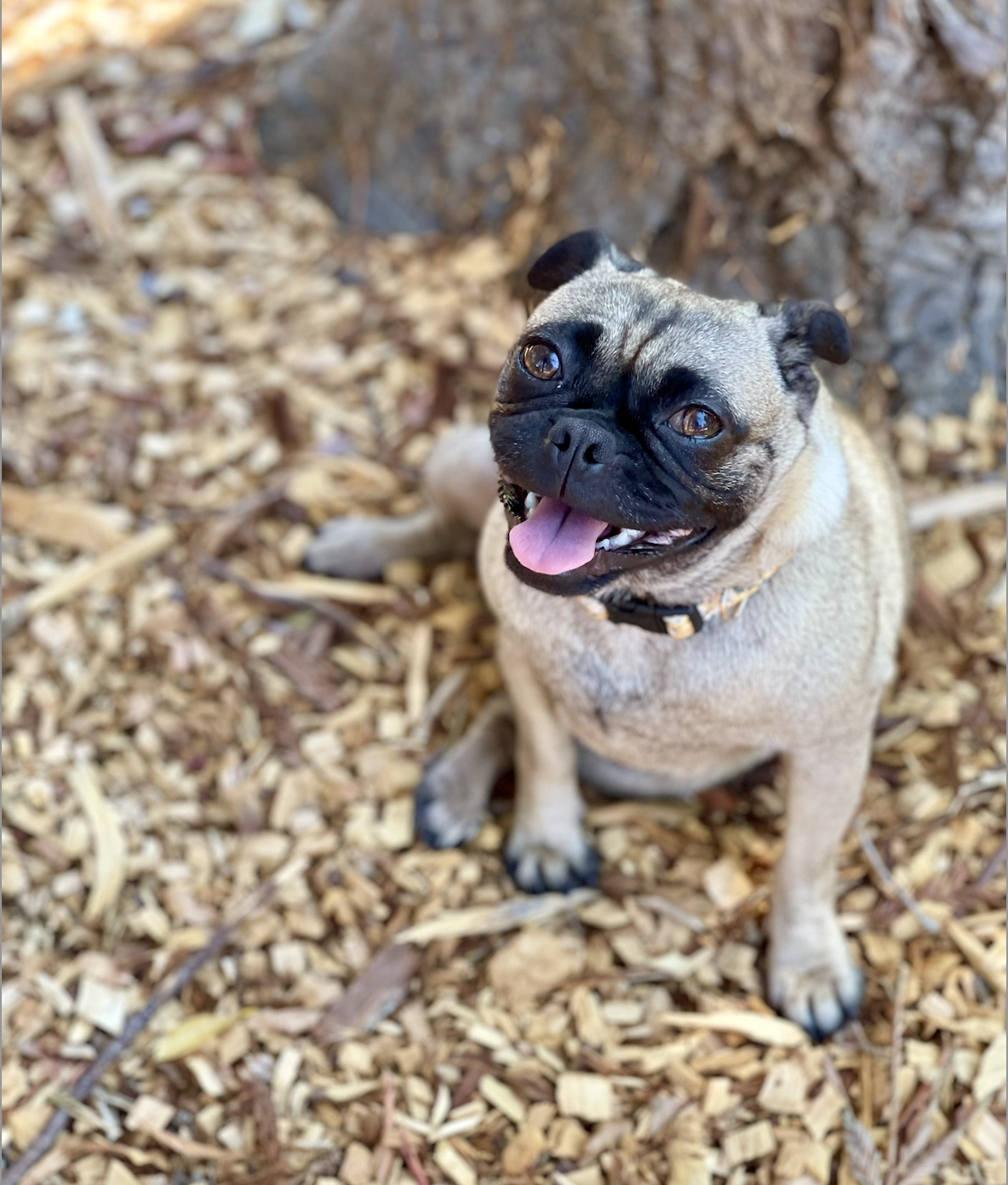 Maple is playful and full of puppy energy, but she also knows how to settle in for a good pug-style nap. She’s already potty trained, knows how to sit, and is eager to keep learning. She is working on her leash manners since she loves saying hello to everyone she meets, and she is responding beautifully to training.