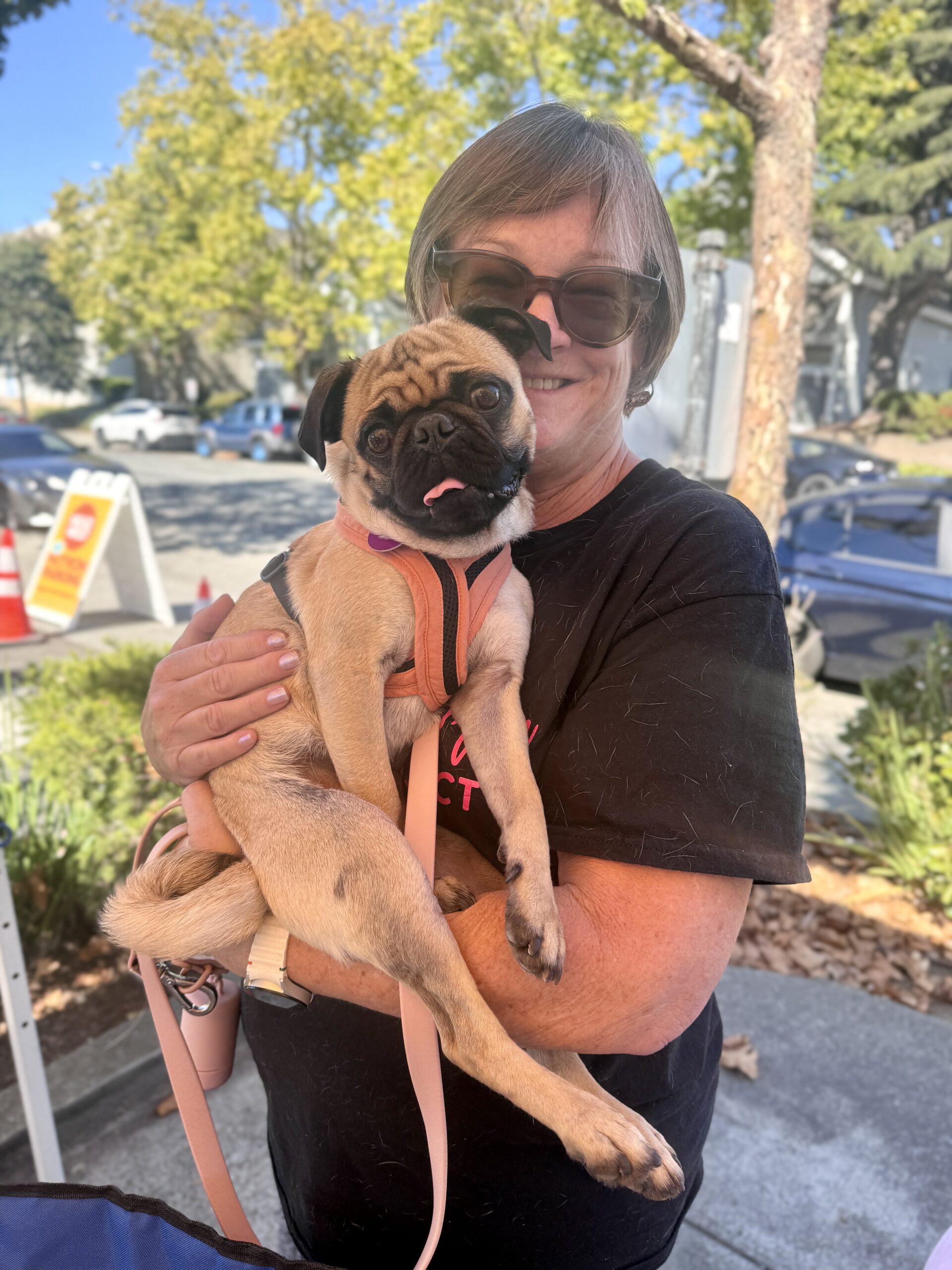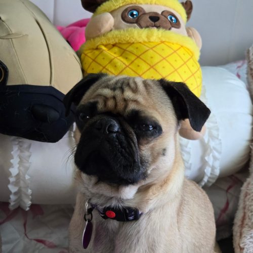 Mercedes is a sweet, spunky young pug with a heart full of love and personality. She’s friendly, resilient, and eager to be part of everything: everything you’d hope for in a rescue pug. She’s about 2 years old.