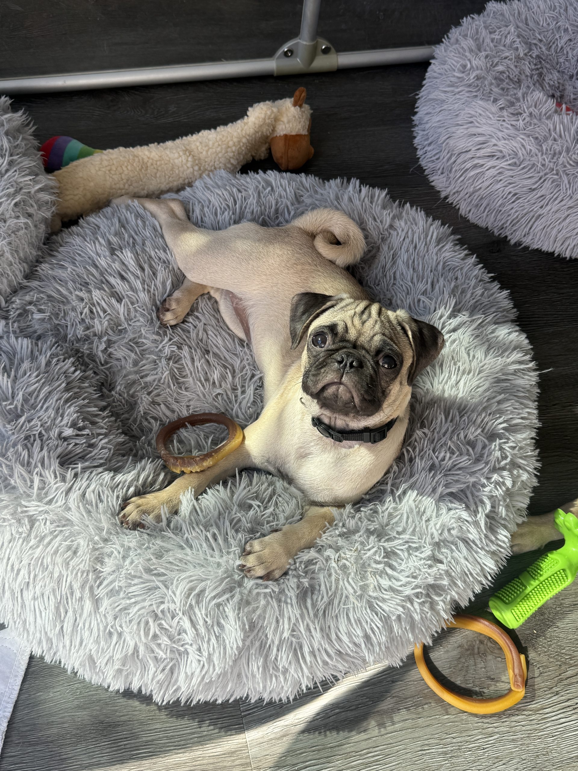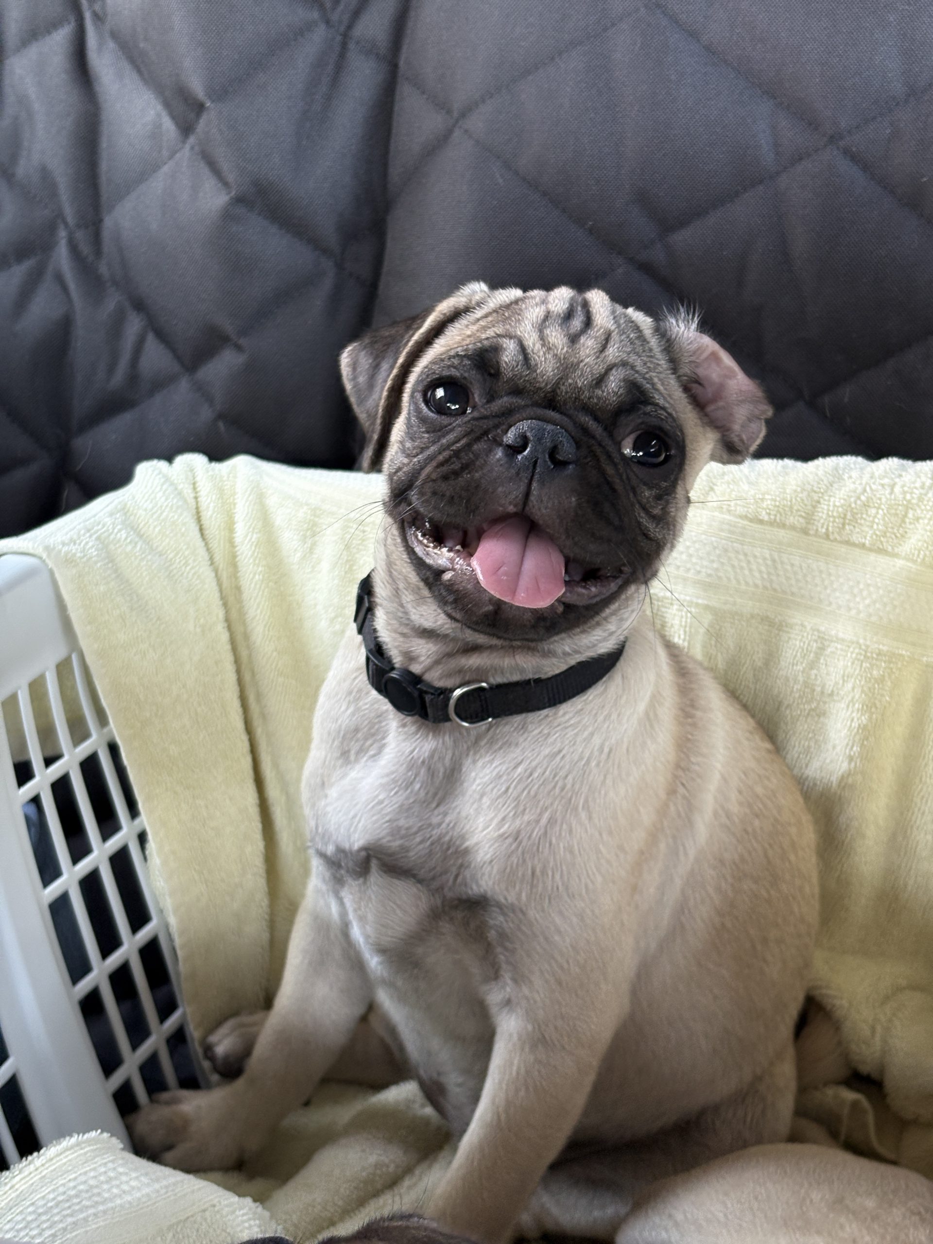 Olive is a spunky and energetic puppy who loves playing, cuddling, and all things fun. She's confident and will definitely take charge! She's potty trained to go outside on a porch potty or a pee pad. She's been fostered with kids, large dogs, and a kitten. Olive is microchipped and fully vaccinated. Adopters will have to sign a spay contract. She came to our rescue with four of her siblings as part of an accidental litter surrender.