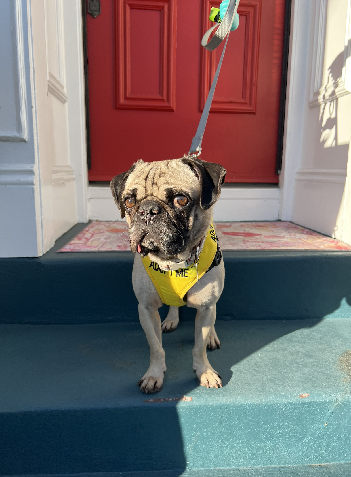 Simba is one of the sweetest, silliest pugs you’ll ever meet. This little guy is all heart: he just wants to be close to his person and soak up every bit of love he can get. He’s on the more submissive side and doesn’t play much with other dogs, but he gets along with everyone just fine.
