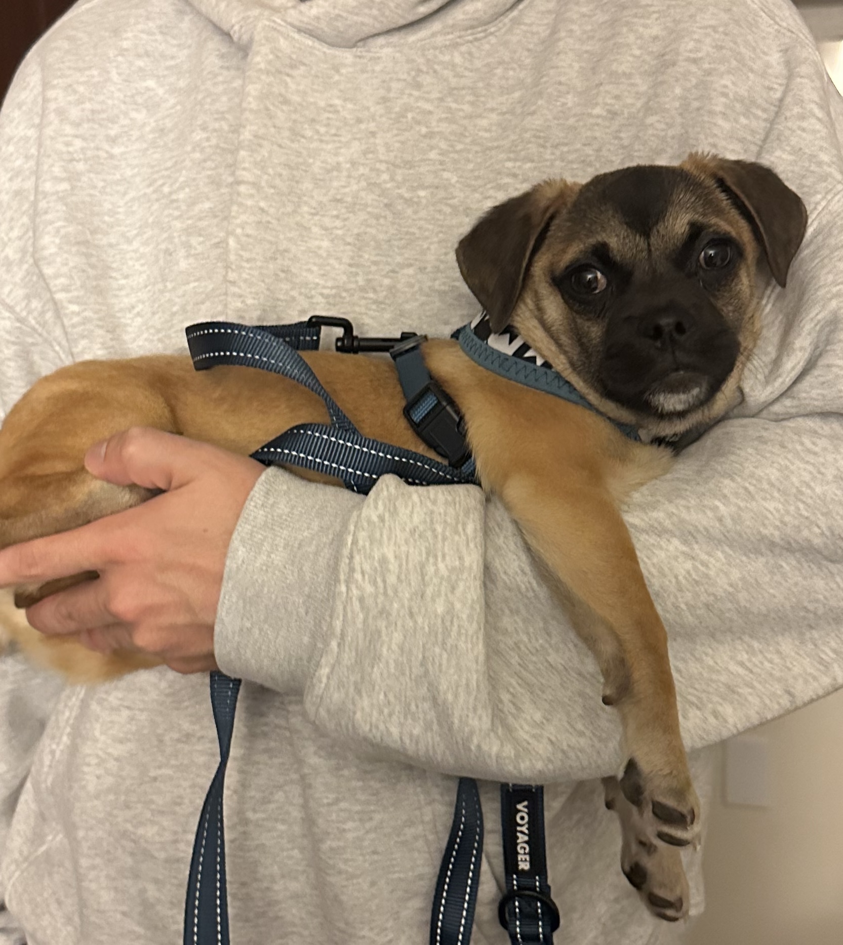 Like many puppies, Wiggles has a bit of separation anxiety right now, but with patience, boundaries, and confidence-building, he’ll continue to blossom. He’s working on his potty training and is getting better every day!