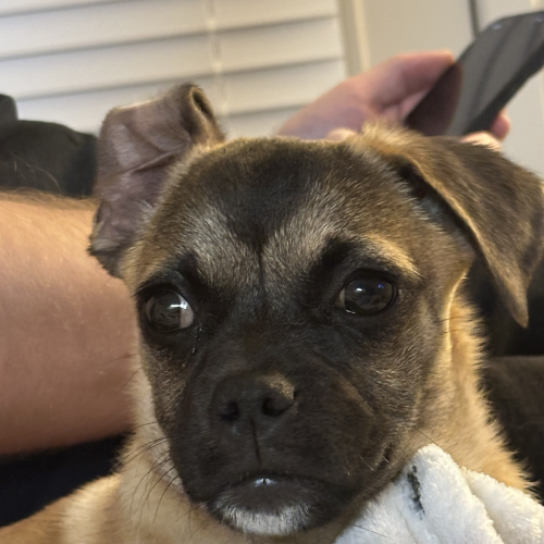 If you’re looking for a cuddly, playful pug mix puppy, Wiggles is ready to wiggle his way right into your heart.