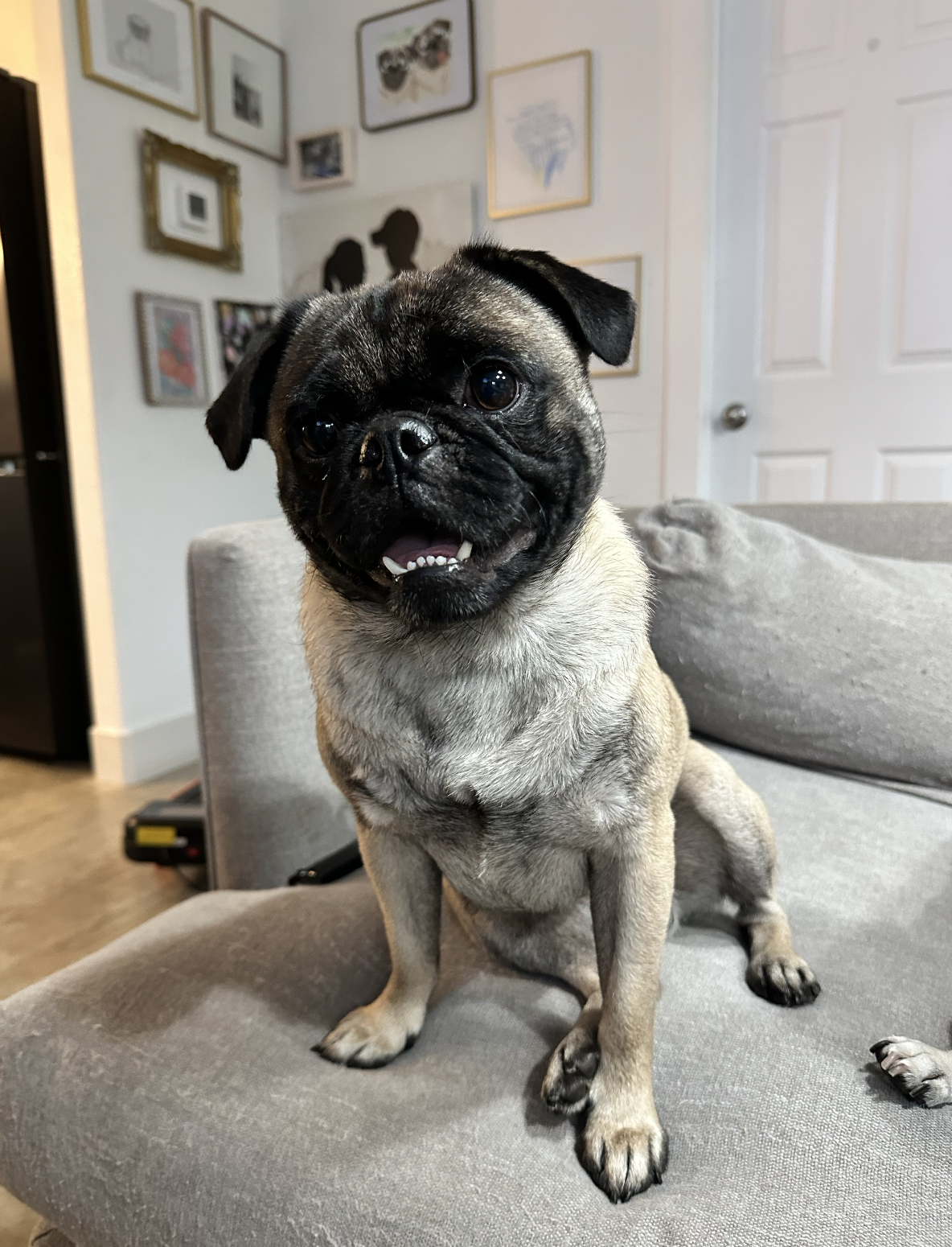 He’s silly, lovable, and has the cutest little teeth. He hasn’t been tested with cats but is good with kids and loves to zoom around the yard. Wilson was found as a stray in Solano County and will be neutered, vaccinated, and microchipped as of November 17.